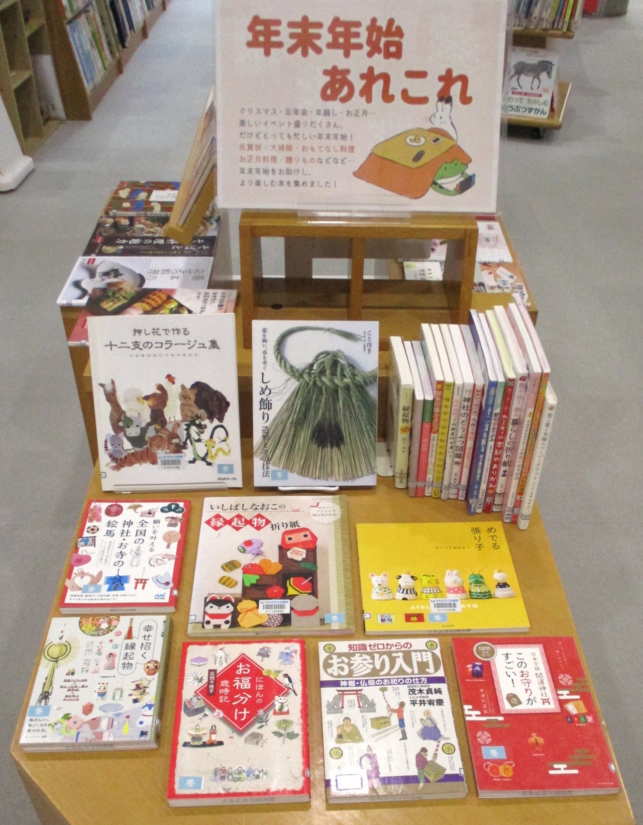 年末年始に役立つ、いろいろなテーマの本を展示しています。